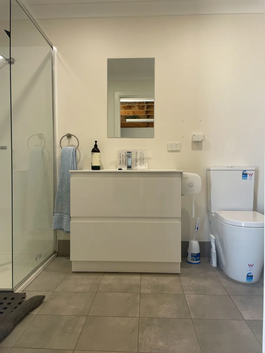 Modern bathroom and laundry, the cottage has been well-kept and maintained over the decades. Perfect holiday rental home on a rural setting.